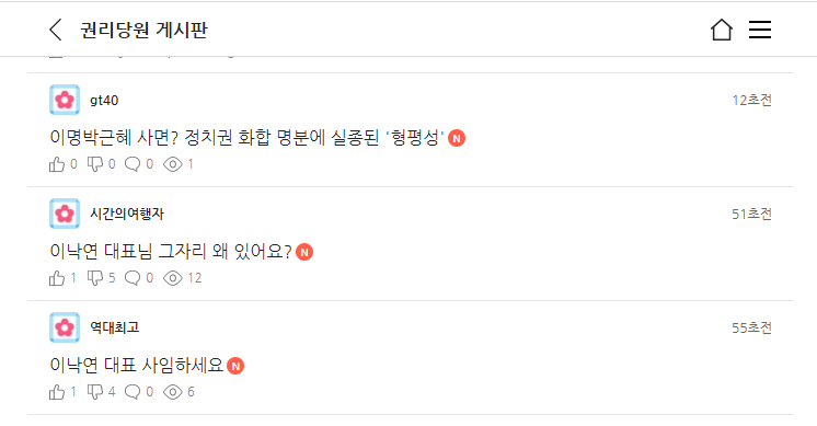 배신감에 사로잡힌 민주당 지지자들은.. 권리당원 게시판에서 이낙연 대표에 항의하고 있는 상황