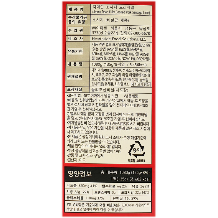 (구매 의향 있으신 분은 아래 jimmy dean 소세지 이미지 클릭)
