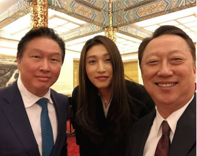 그러면서 최 회장은 2017년 12월 중국 베이징 인민대회당 만찬 당시 김연경 선수, 박용만 두산인프라코어 회장과 함께 찍은 사진을 공개했다.